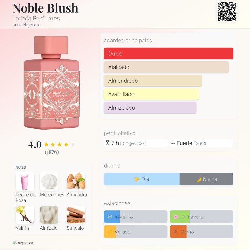 Lattafa Al Noble Blush es una fragancia que evoca la delicadeza y sofisticación de un rubor rosado. Esta creación de Lattafa Perfumes combina a la perfección notas florales y gourmand, creando una experiencia olfativa única y adictiva.