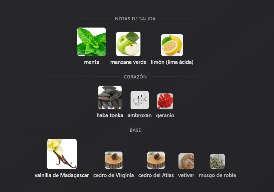 Versace Eros abre con una combinación vibrante y fresca de menta, manzana verde y limón, que captura la atención al instante. En su corazón florece la mezcla de haba tonka, ambroxan y geranio, aportando suavidad especiada y profundidad masculina. Finalmente, la base reúne vainilla de Madagascar, cedro, vetiver y musgo de roble para una estela cálida, envolvente y duradera.